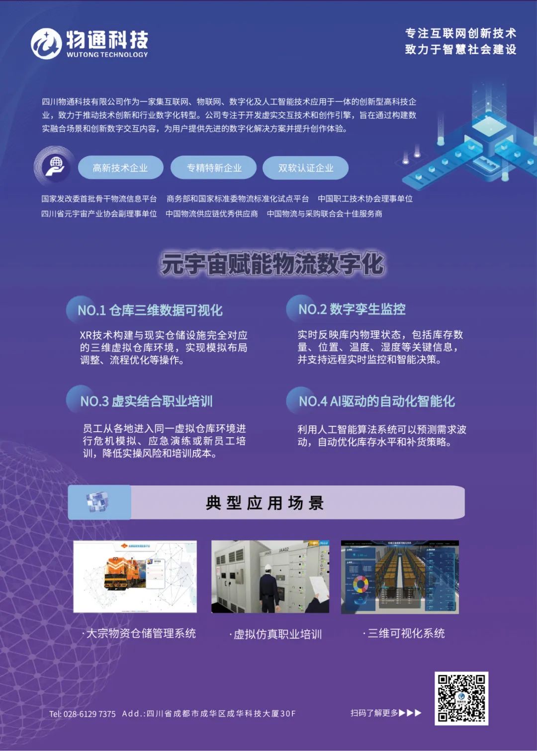 ?物通科技專注于構(gòu)建數(shù)智交互內(nèi)容和數(shù)實(shí)融合場(chǎng)景,面對(duì)新一輪科技革命與產(chǎn)業(yè)變革,公司積極響應(yīng)國(guó)家“智改數(shù)轉(zhuǎn)”戰(zhàn)略,以自主打造的線上元宇宙空間“界坐標(biāo)”與線下“元宇宙數(shù)智實(shí)驗(yàn)工場(chǎng)”為載體,構(gòu)建了一套涵蓋倉(cāng)庫(kù)三維數(shù)據(jù)可視化、數(shù)字孿生監(jiān)控、虛實(shí)結(jié)合職業(yè)培訓(xùn)、AI驅(qū)動(dòng)的自動(dòng)化智能化等多維度的賦能體系,深度革新傳統(tǒng)物流模式,勾勒出未來供應(yīng)鏈物流行業(yè)在新質(zhì)生產(chǎn)力驅(qū)動(dòng)下的無限創(chuàng)新與變革前景。