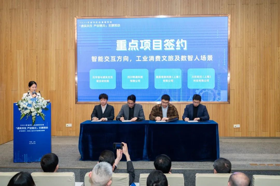 ?在萬眾矚目的重點項目簽約儀式上,物通科技與元宇宙與虛實交互聯(lián)合研究院、視辰信息科技(上海)有限公司、大初前元(上海)科技有限公司達成戰(zhàn)略合作。