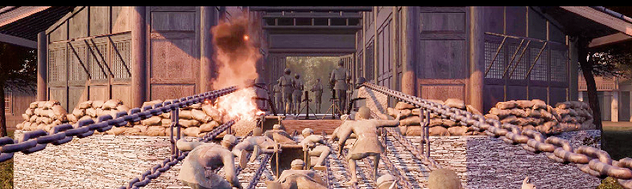 在環(huán)幕中,黨員們還提前體驗(yàn)了正在調(diào)試過(guò)程中的物通原創(chuàng)VR沉浸式探索體驗(yàn)項(xiàng)目——《飛夢(mèng)瀘定橋》。通過(guò)先進(jìn)的VR技術(shù),體驗(yàn)者可以“穿越”瀘定橋這一著名紅色地標(biāo)的前世、今生和未來(lái),成為革命小隊(duì)中的一員,通過(guò)射擊、攀爬、穿越等自由交互操作,與革命先烈并肩作戰(zhàn),共同見(jiàn)證歷史的重要時(shí)刻。這種身臨其境的體驗(yàn),讓黨員們對(duì)黨的光輝歷程有了更加直觀和深刻的認(rèn)識(shí)。