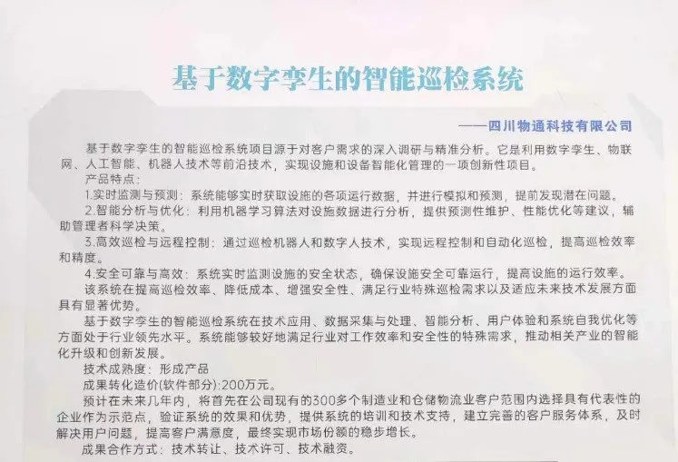 本次活動以推動行業(yè)科技創(chuàng)新為核心,四川物通科技集團有限公司作為行業(yè)技術(shù)領(lǐng)先企業(yè),榮耀受邀出席,并在啟動儀式上隆重展示了其自主研發(fā)的“基于數(shù)字孿生的智能巡檢系統(tǒng)項目”,引發(fā)廣泛關(guān)注與贊譽。