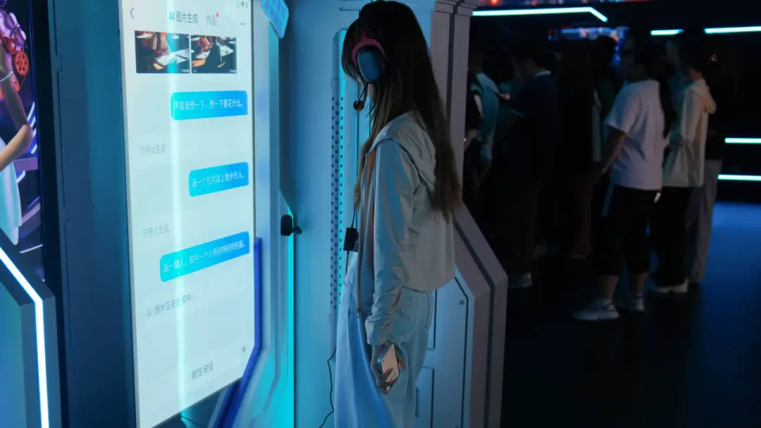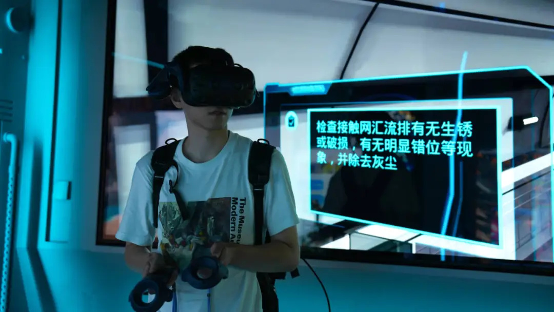 ? 師生們對(duì)實(shí)驗(yàn)工場(chǎng)里先進(jìn)的頭顯設(shè)備、豐富的虛實(shí)交互內(nèi)容興趣十足,并積極學(xué)習(xí)體驗(yàn)。尤其是物通科技自主開(kāi)發(fā)的多款VR虛擬職業(yè)培訓(xùn)系統(tǒng)、AI大語(yǔ)言模型數(shù)字人、逼真的裸眼3D內(nèi)容、VR+MR深度交互游戲、虛擬拍攝等場(chǎng)景,師生們都饒有興趣地嘗試互動(dòng)。