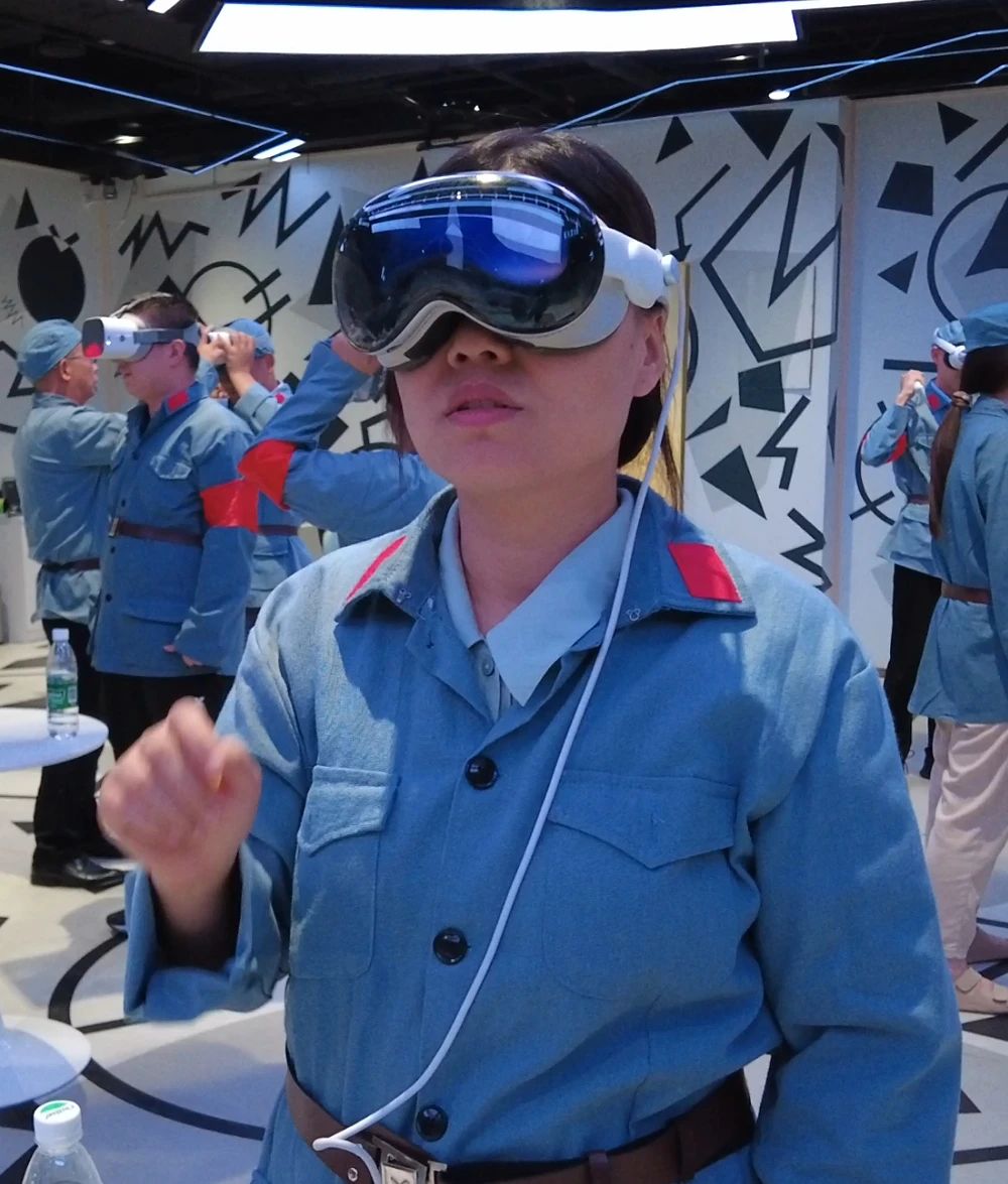 在“紅游智覽”環(huán)節(jié),黨員們佩戴VR紅色黨建一體機(jī)等頭顯設(shè)備,進(jìn)入數(shù)智技術(shù)構(gòu)建的沉浸式紅色空間。全景環(huán)繞的視聽效果,讓人仿佛置身歷史現(xiàn)場(chǎng),步入那一幕幕定格于史冊(cè)的瞬間。隨著場(chǎng)景轉(zhuǎn)換,大家在虛擬與現(xiàn)實(shí)交織的氛圍中真切感受到信仰的厚度,并在互動(dòng)協(xié)作中凝聚起奮進(jìn)的力量。